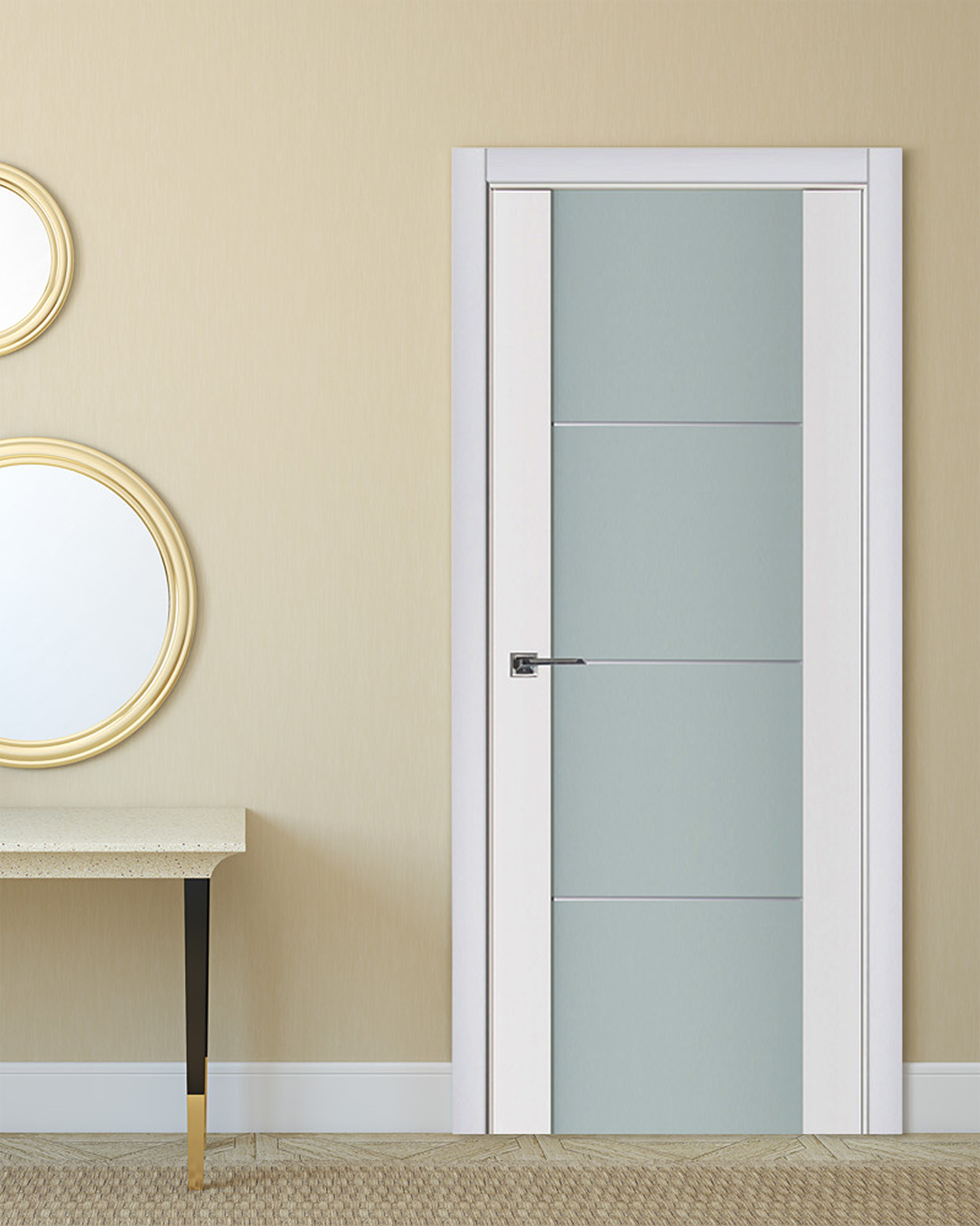 Create a bright, open atmosphere in your home or office, even with closed doors. The Triplex Series features modern interior doors crafted from wood, MDF, and fused triplex glass with a frosted finish—offering the perfect blend of transparency and privacy.