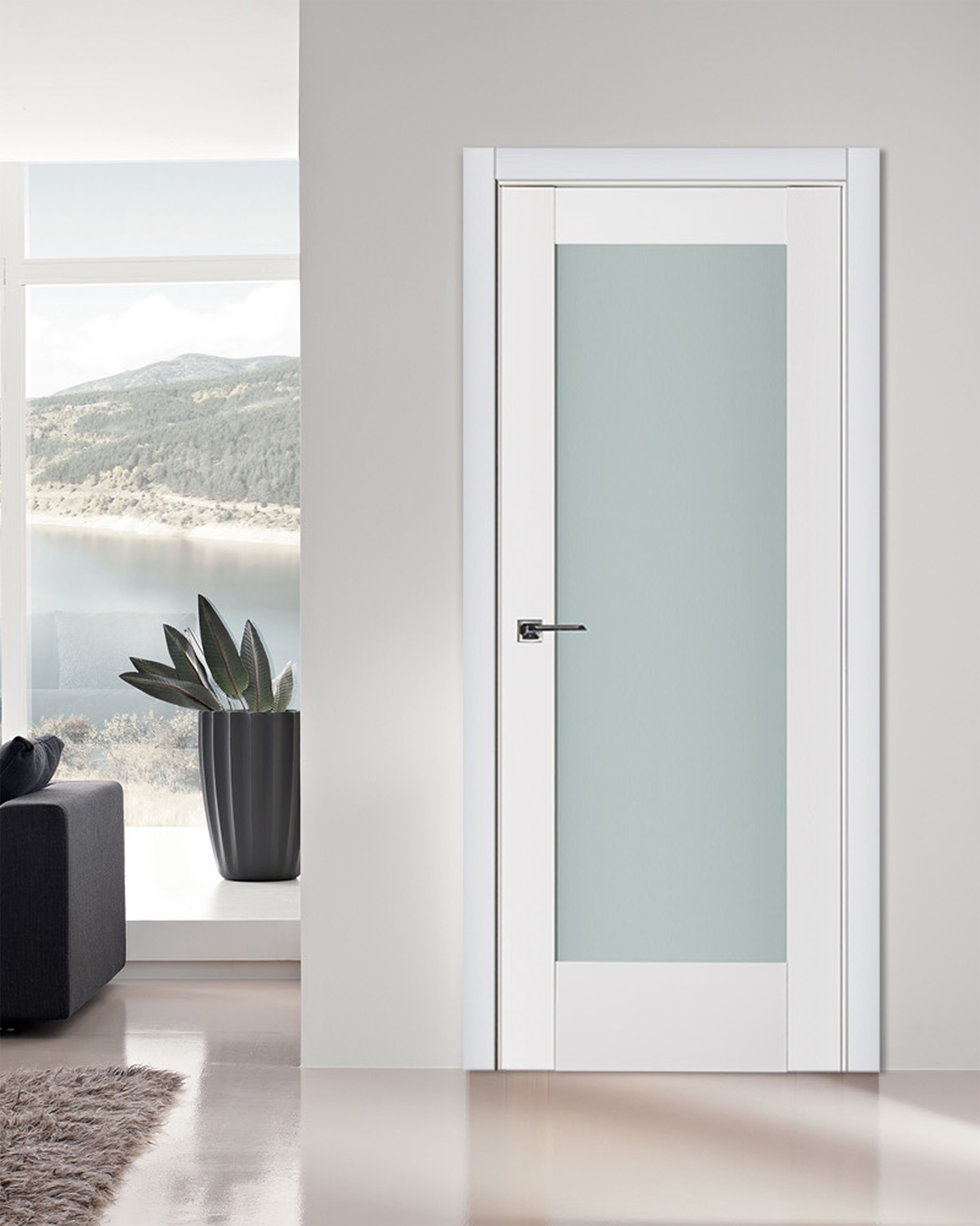 Create a bright, open atmosphere in your home or office, even with closed doors. The Triplex Series features modern interior doors crafted from wood, MDF, and fused triplex glass with a frosted finish—offering the perfect blend of transparency and privacy.