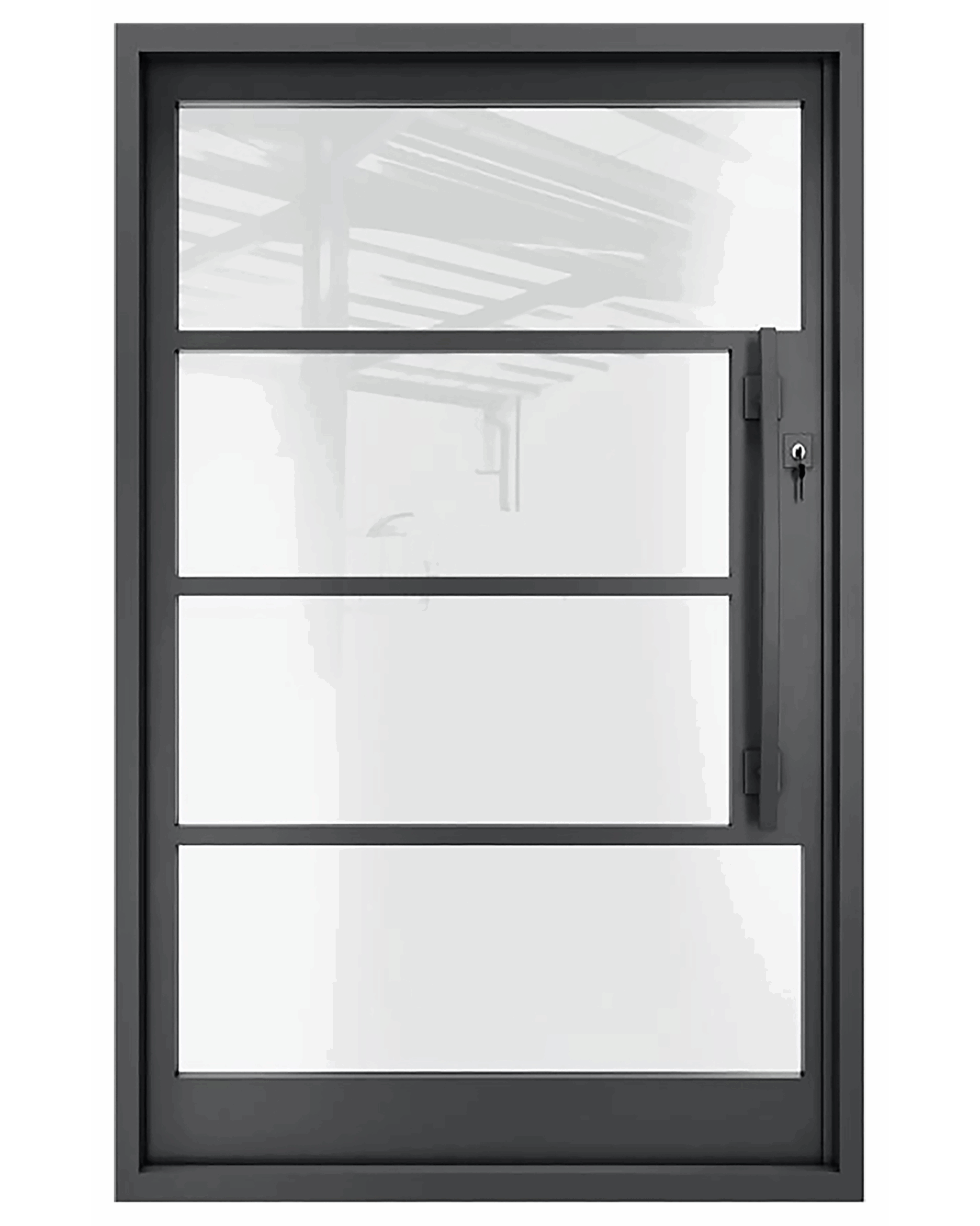 Pivot Iron Entry Doors seamlessly blend strength, elegance, and functionality. Constructed from heavy 12-gauge steel in standard 16 x 16 mm or custom sizes, they offer unmatched durability and security. Each door is fitted with Aquatex glass, combining refined aesthetics with practicality, while innovative hinges enable effortless cleaning and ventilation. A unique window lock mechanism ensures secure and convenient operation of the glass frame.