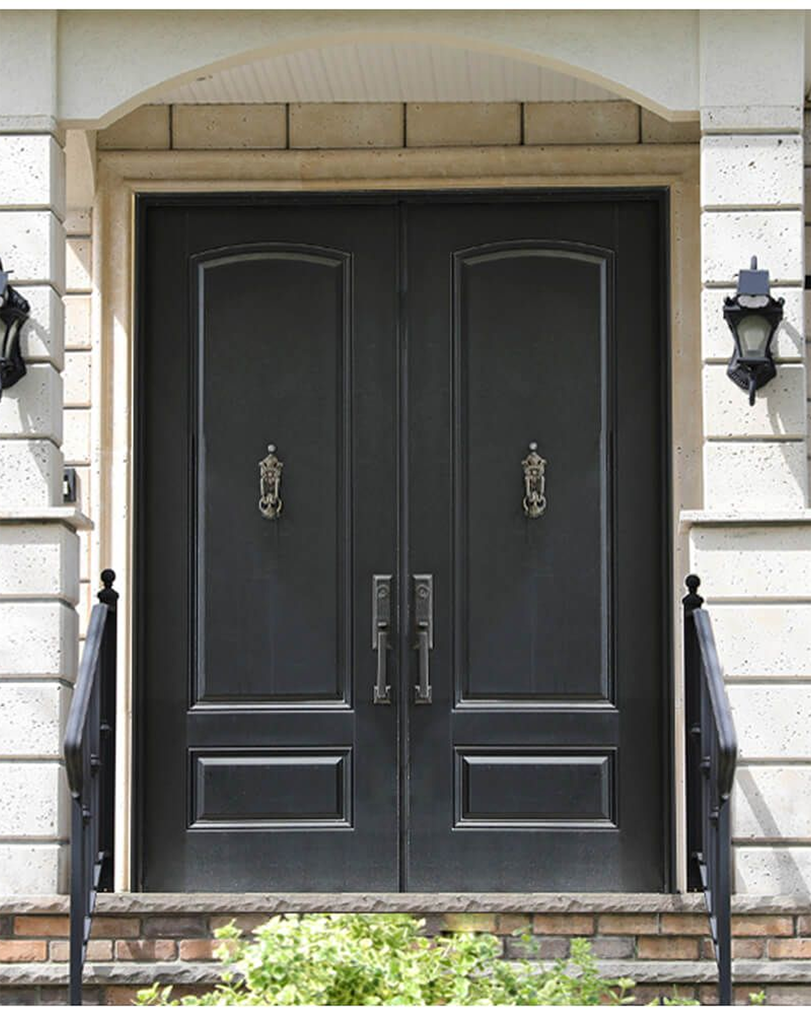 All of our doors undergo a unique seven-step process: Sandblast, Zinc-coat, anti-corrosive prime, middle coat, top coat, faux finish, clear coat.