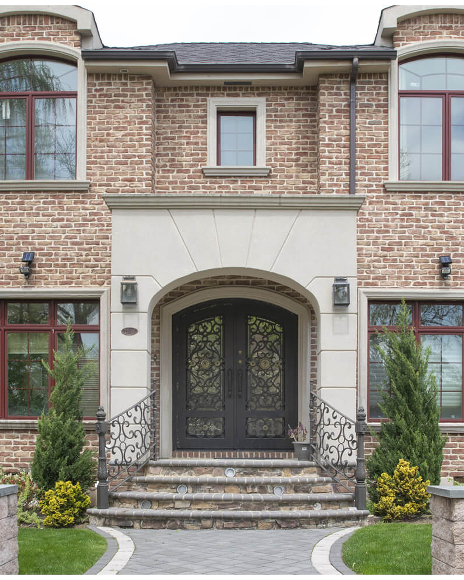 All of our doors undergo a unique seven-step process: Sandblast, Zinc-coat, anti-corrosive prime, middle coat, top coat, faux finish, clear coat.